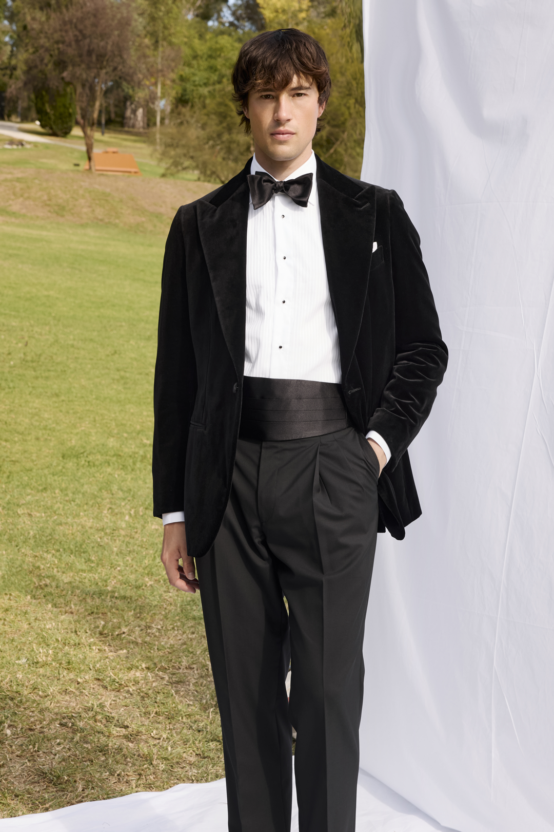 Black Velvet Jacket and Wool Trousers