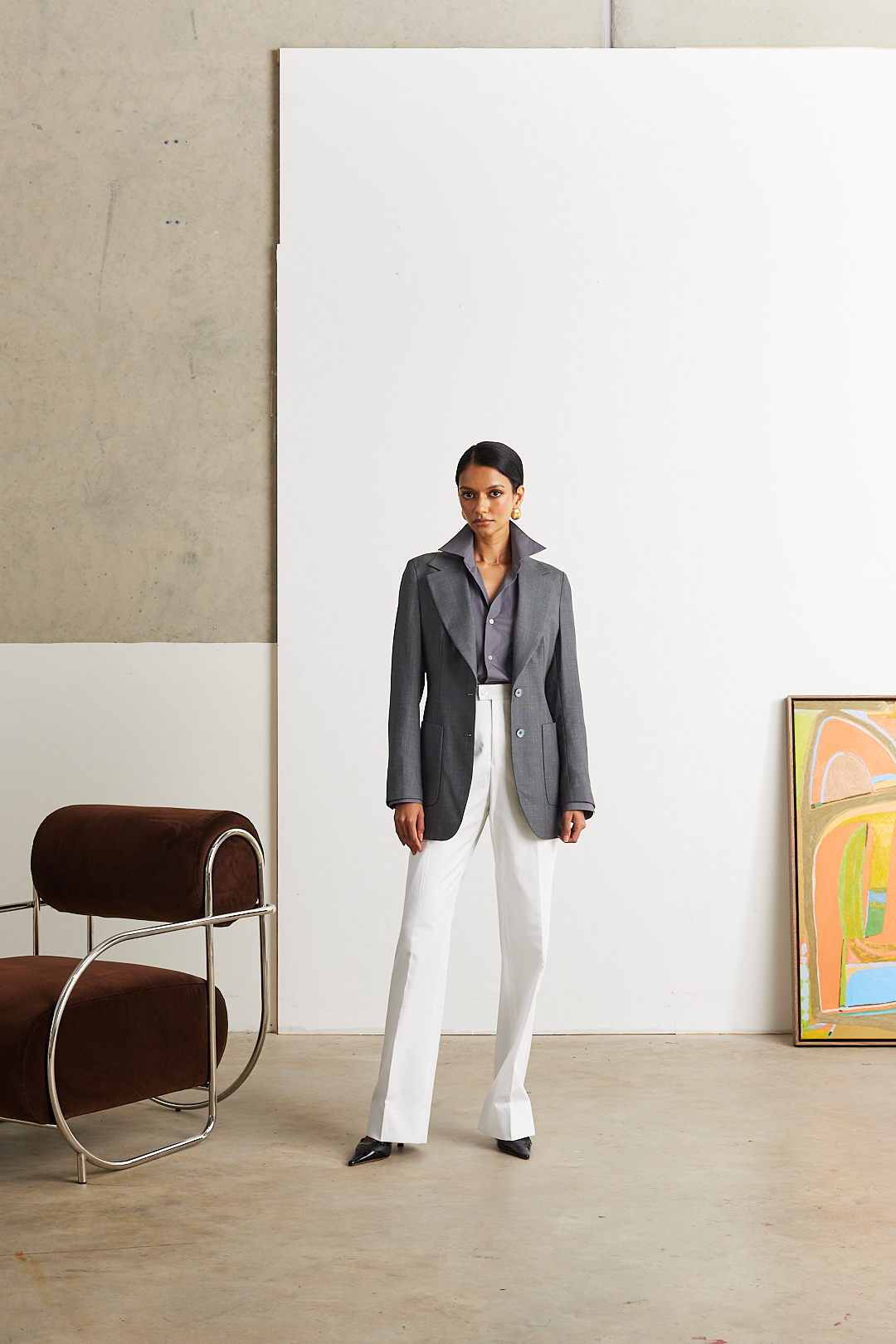 Mid Gray Single Breasted Jacket and White Cotton Trousers