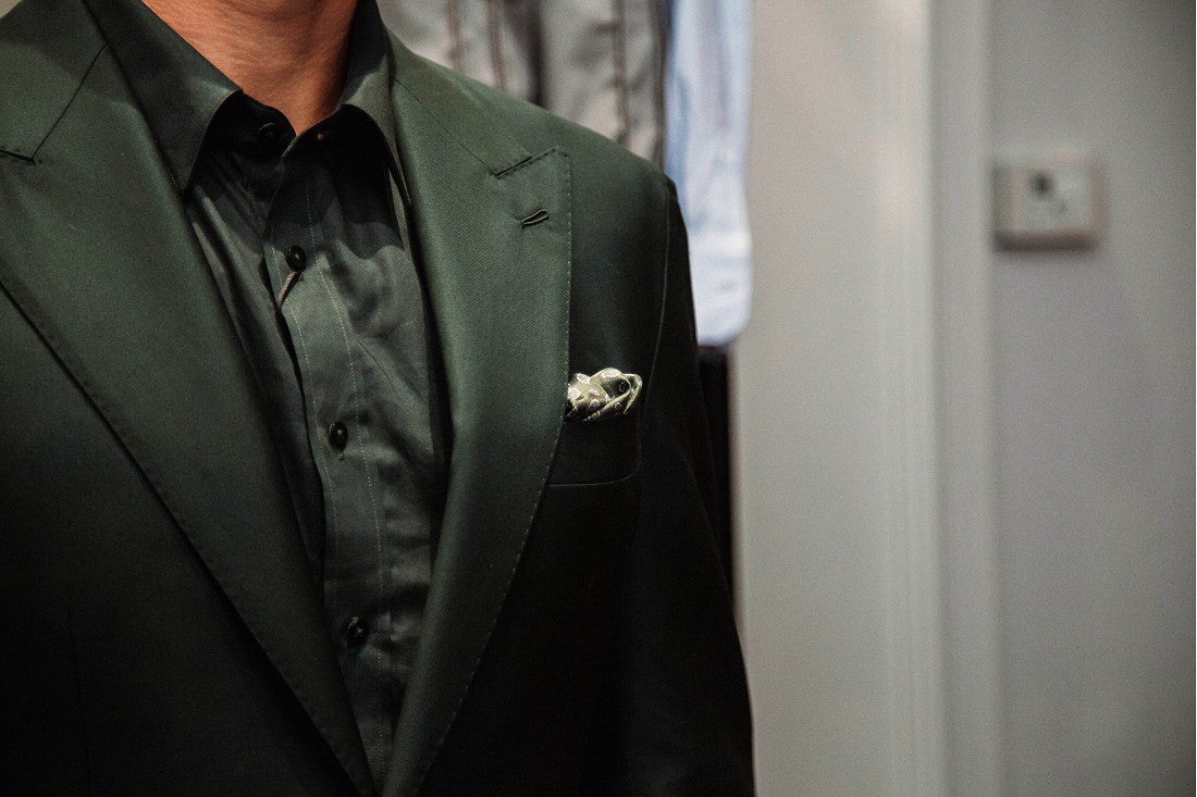 Nodding to the British mod look and the slim suits of Madison Avenue ad men, the Presidential fold is marked by its decidedly understated look. Defined by crisp edges and a rectangular shape, a Presidential fold runs the length of the breast pocket and protrudes evenly by 1-2 centimetres.