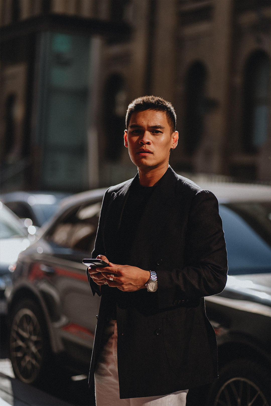 Outside of the standard two-piece suit, you can also experiment with shirting and accessories.