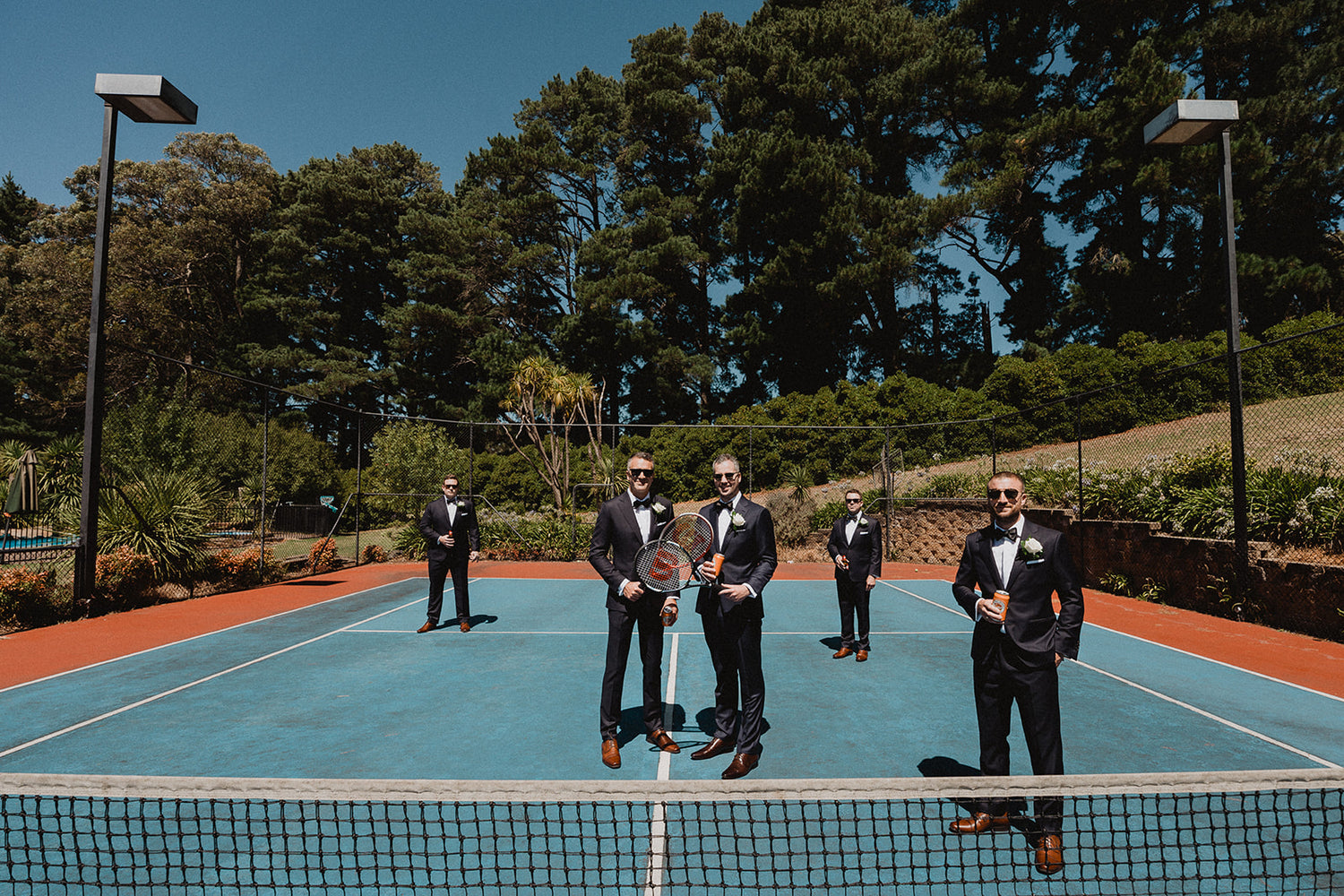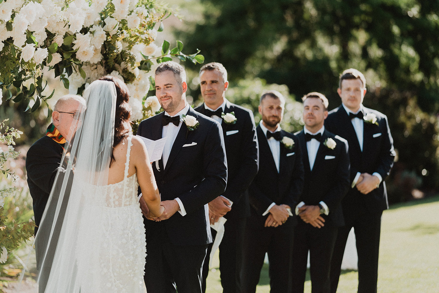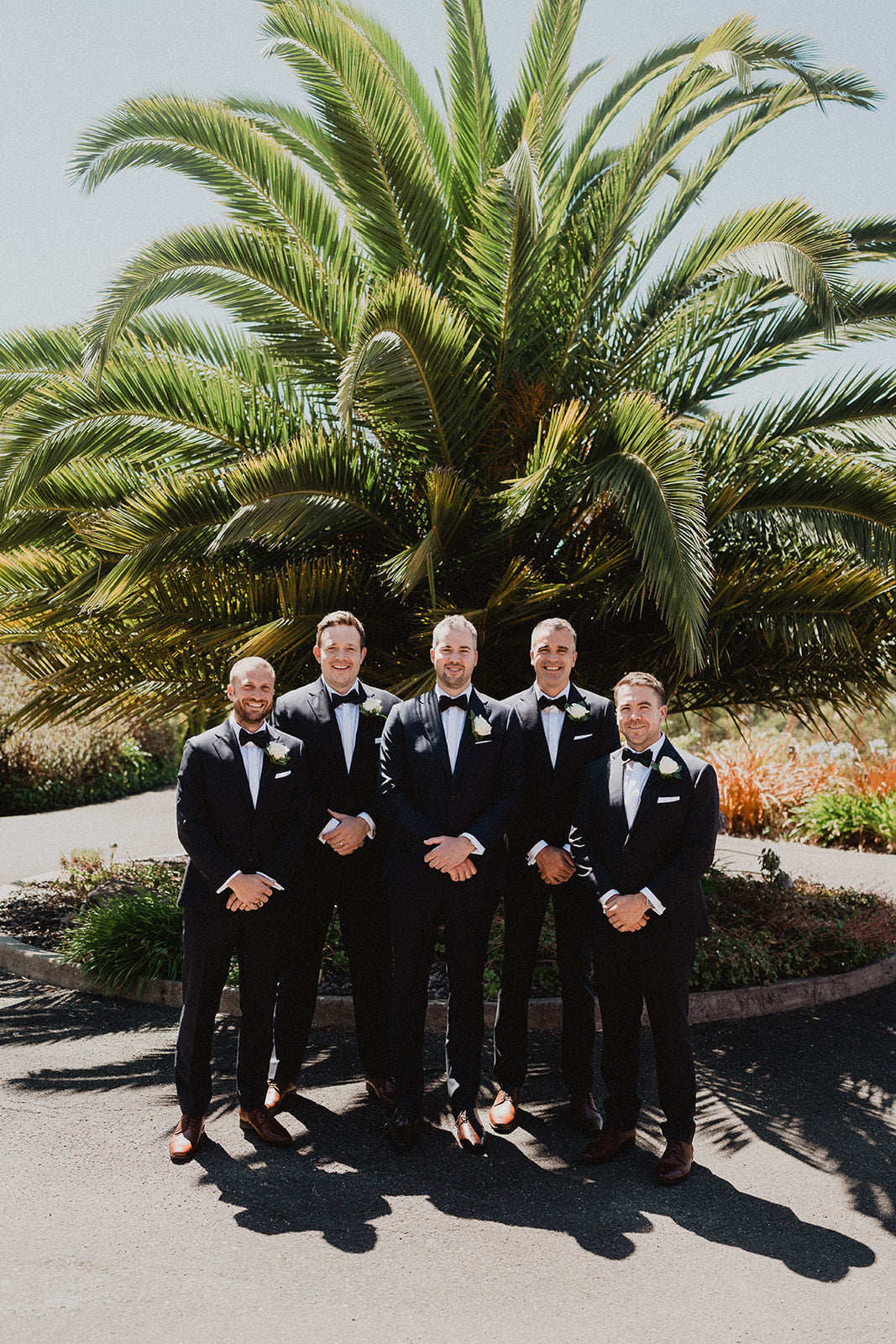 While it’s unexpected, one of our favourite groomsmen bow tie ideas is using them to elevate more casual wedding dress codes. Not only does this make for a strong sense of contrast in the ensemble itself; it can also help distinguish members of a groom's party from other attendees at the wedding.