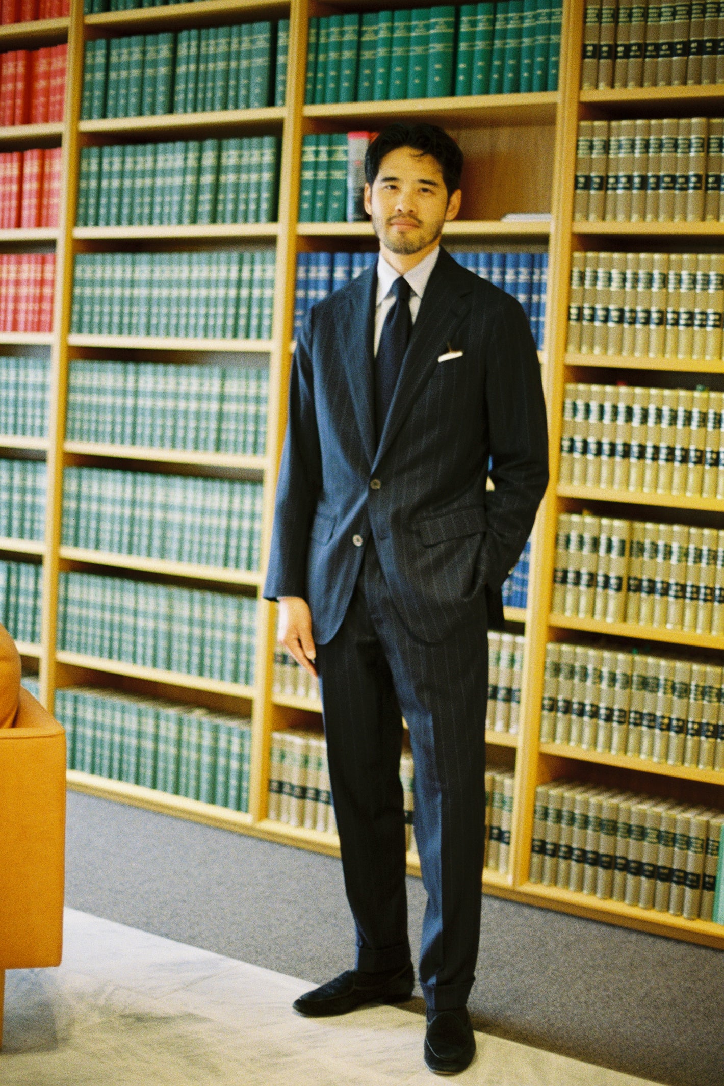 The selection of fabrics is crucial to the success of our tailored business suits. Our sourcing partners include some of the most respected mills in the world, offering premium wool, cashmere, linen blends, and high-performance fabrics designed to keep you looking sharp in any season. If you need lightweight summer business suits for warmer months or more substantial options for winter, we have a variety of choices to meet your needs. Our team will guide you through the fabric options, ensuring that your bespoke business suit is perfect for both your lifestyle and the environment you work in.