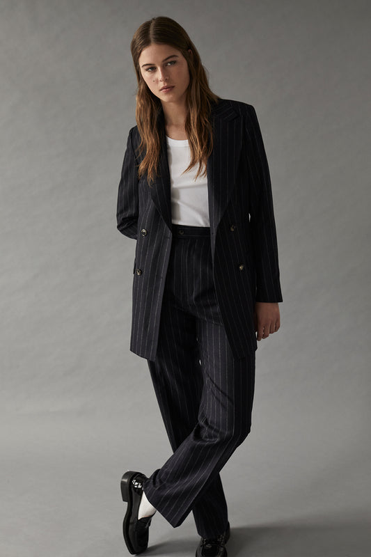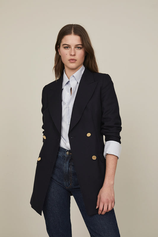 Navy Dugdale Hopsack Double Breasted Blazer