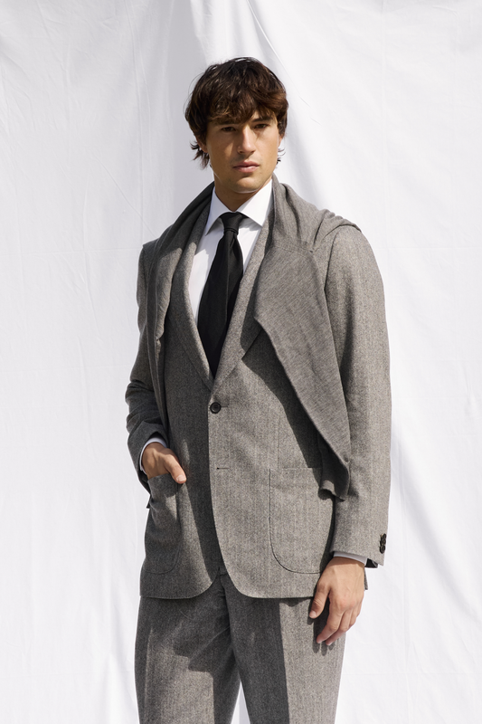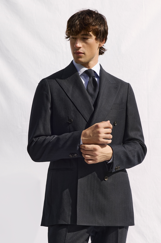 Charcoal Wool Cashmere Herringbone Single Breasted Suit
