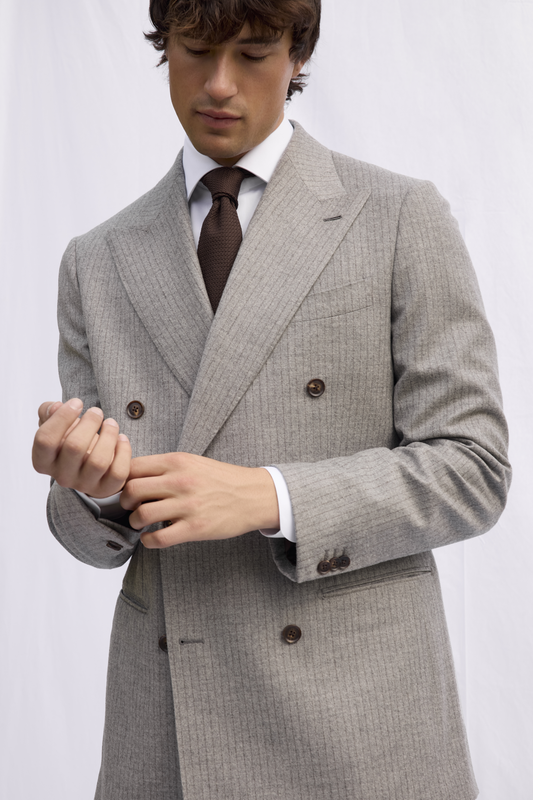 Gray and Brown Pinstripe Wool Cashmere Double Breasted Suit