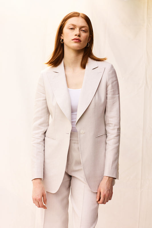Off-white Herringbone Single Breasted Peak Lapel Suit